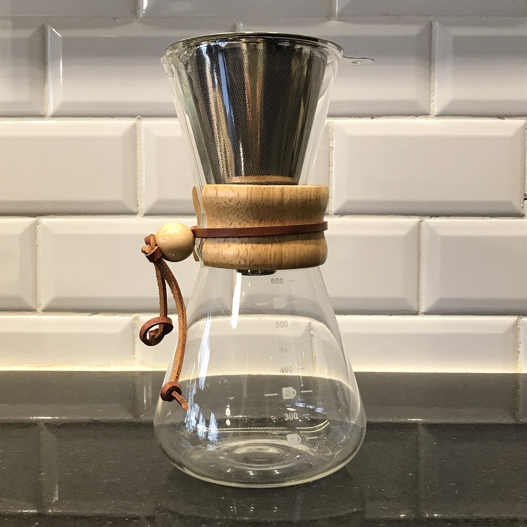 Decantador de café manual por goteo. El agua pasa a través de una capa de café y un filtro reutilizable de acero inoxidable. Te brindará un café mucho más aromático de cuerpo liviano.